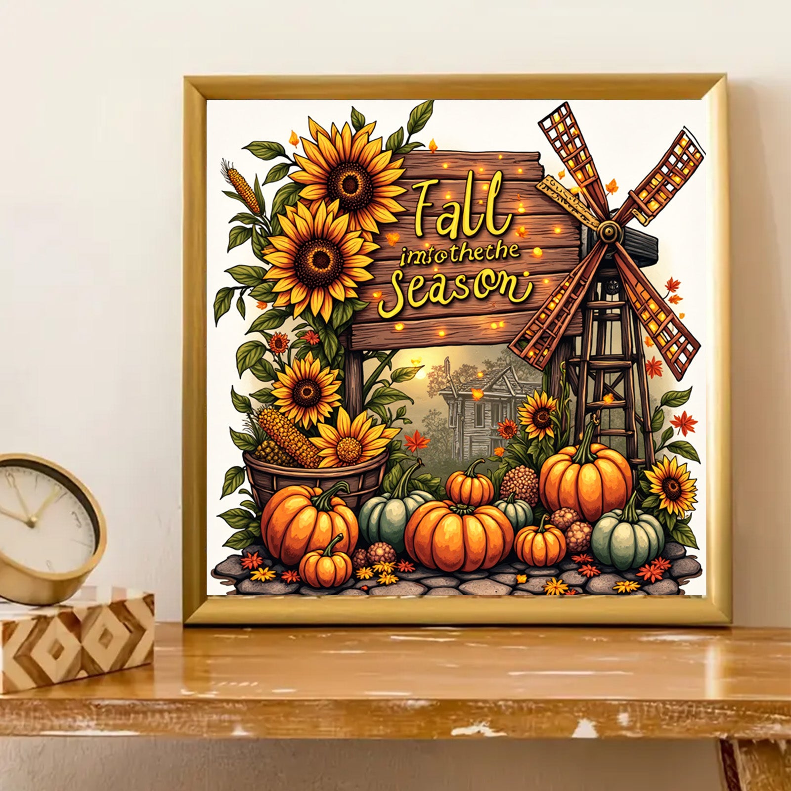 * **A Harvest of Warmth:** Picture a rustic scene brimming with vibrant pumpkins, sunflowers in full bloom, and a charming windmill, all set against the backdrop of a quaint, sun-kissed farmhouse. This piece is a true celebration of autumn's splendor!